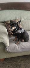 Size XS goes perfect for a 45-pound chihuahua. It's very nice, exact to the photo, good quality.