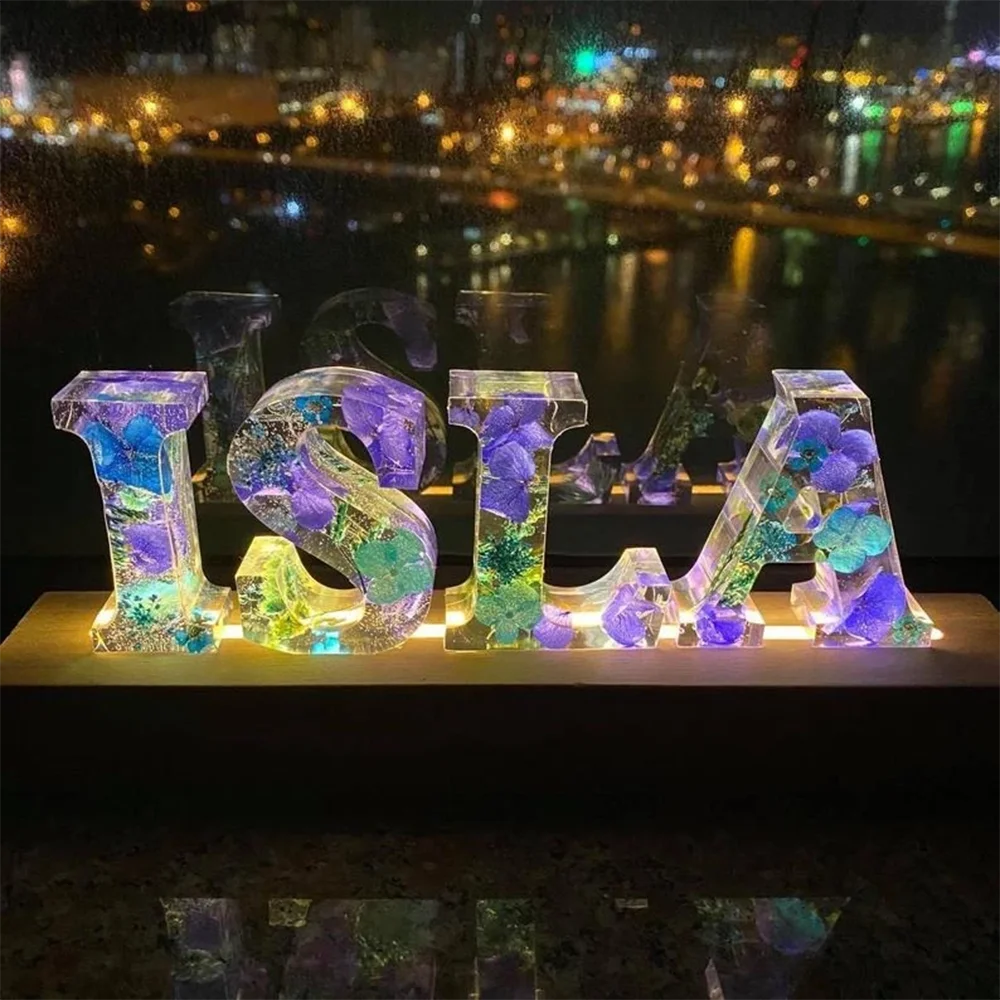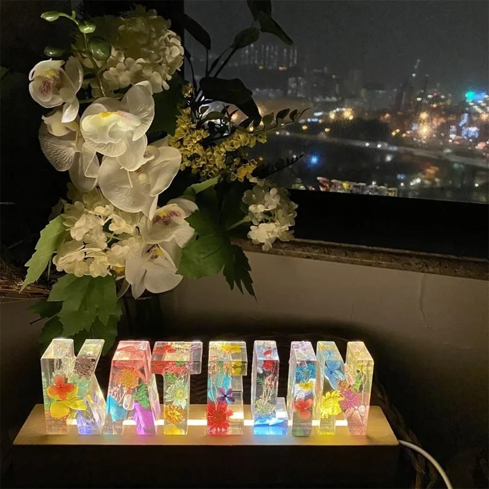 Are you looking for a special gift for your loved ones? Introducing to you our personalized dried flowers letter lamp. The romantic letter lamp can freely choose any letter, can form the name of the lover, words with unique meaning, or express love. The letters of the 3D crystal letter lamp are made of environmentally friendly resin. This lamp will provide excellent lighting and a romantic atmosphere, very suitable for your living room, kitchen, bedroom, office, home furnishings, shooting props, party time, camping, or any other place. Custom letter light is the best Christmas gifts, anniversary gifts, birthday gifts, valentine’s day gifts. What are you looking for? Buy now!