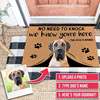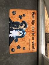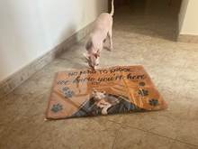 Are you looking for a special doormat to welcome your guests? Introducing to you our Funny personalized pet doormat, it is a stylish way for pet lovers. This mat is made of durable heat-resistant non-woven fabric, top, and neoprene rubber non-slip backing. It is widely used for indoor front welcome mat, kitchen rug, floor mat, living room, and so on. You can use it to dry wet feet, grab dirt, grime, keeping floors clean and dry. It is easy to clean, simply use a damp cloth or sponge and mild detergent to clean dirt. The personalized doormat is the perfect gift for new homeowners, pet lovers, family, friends, or even yourself. Welcome your friends with this awesome doormat, buy now!