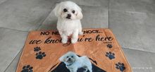 Well. The material feels like a bathroom mat material. Surprisingly really nice material. Still can be put outdoors. The store was extremely nice and super professional. Drawing was made quick and responsive and attentive. I love it 100%. Muffin says you made her look adorable.