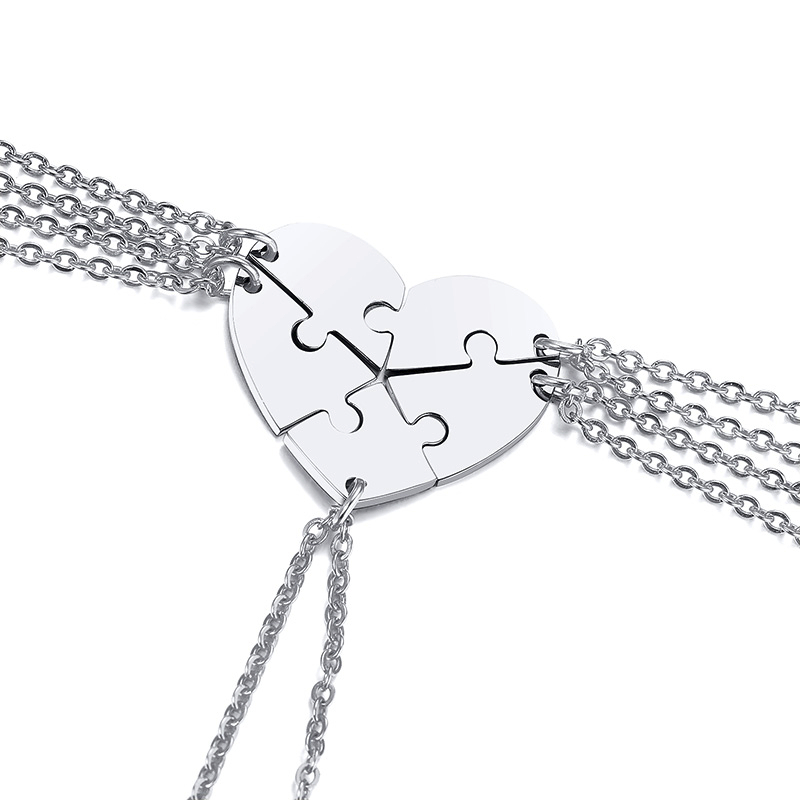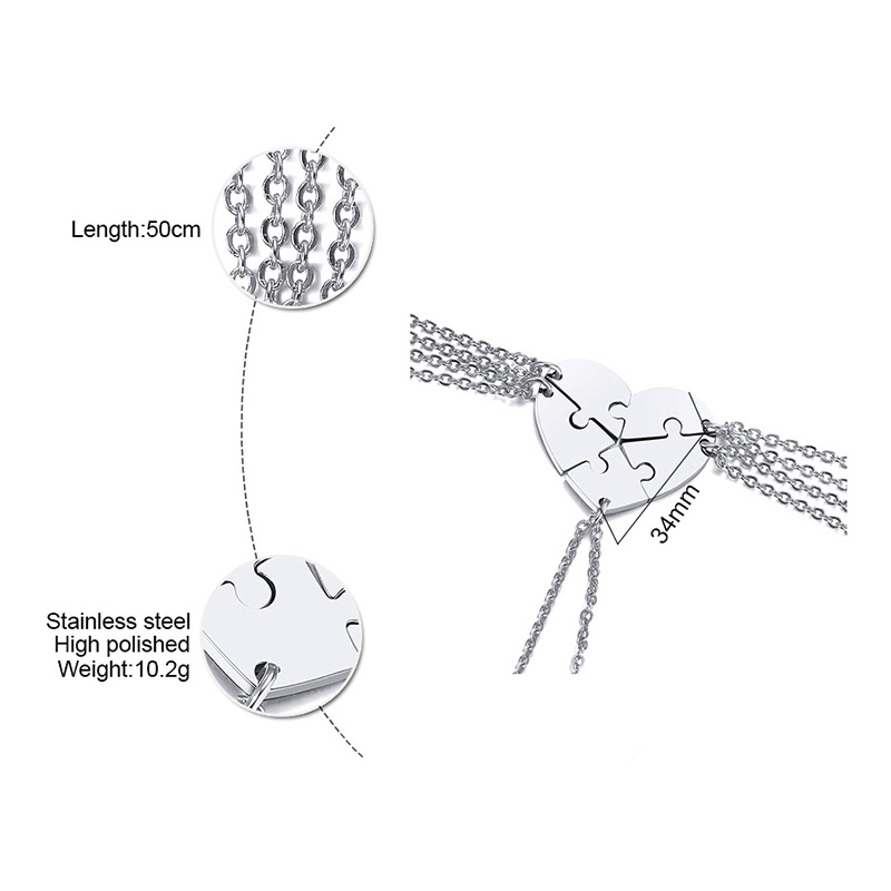 Are you looking for a souvenir for your close group of friends or family? Our Personalized puzzle necklace is the best choice. The product is made from titanium material, protected from tarnishing, not lead, ensuring safety without irritating your skin. This necklace is designed in the form of matching puzzle pieces, one for you and the other for your loved ones. Show your love through this necklace that is engraved with their names. You can choose a blank or customized version., engraving name, or whatever you want will be a good idea which can makes your necklace special. It is suitable for everyday wear on all occasions whether it is going to school, going to work or hang out. Order now!
