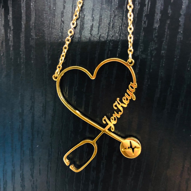 Spoil yourself or surprise your favorite medical professional with this unique Personalized stethoscope necklace, they will treasure for a lifetime. This is a perfect way to say thank you to a frontline hero. You can customize any name you want. The intertwined name and stethoscope mean your infinite gratitude to the medical staff. The necklace is made of stainless steel, plated to gold, rose gold, or silver. This beautiful stainless steel finish pairs perfectly with any caregiver and every outfit. Nursing is a work of love, so show your appreciation for your health care heroes! What are you looking for? Buy now!