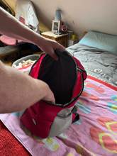 Cool backpack. Dog spaniel 10 kg. She probably drowned a little there, but she liked it, did not want to get out. Everything is super thoughtfully. For easy climbing, the upper valve is removed. It will be convenient to ride with it on the motorcycle.