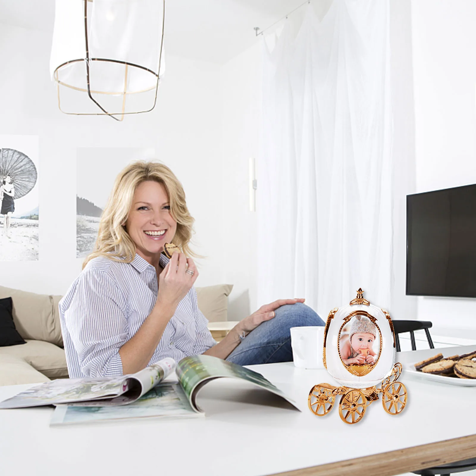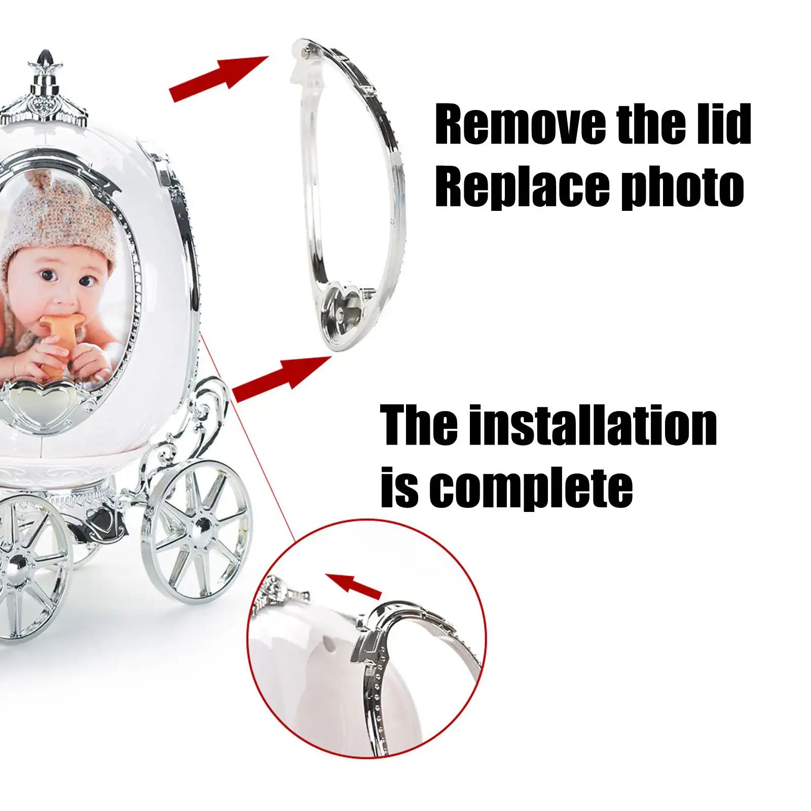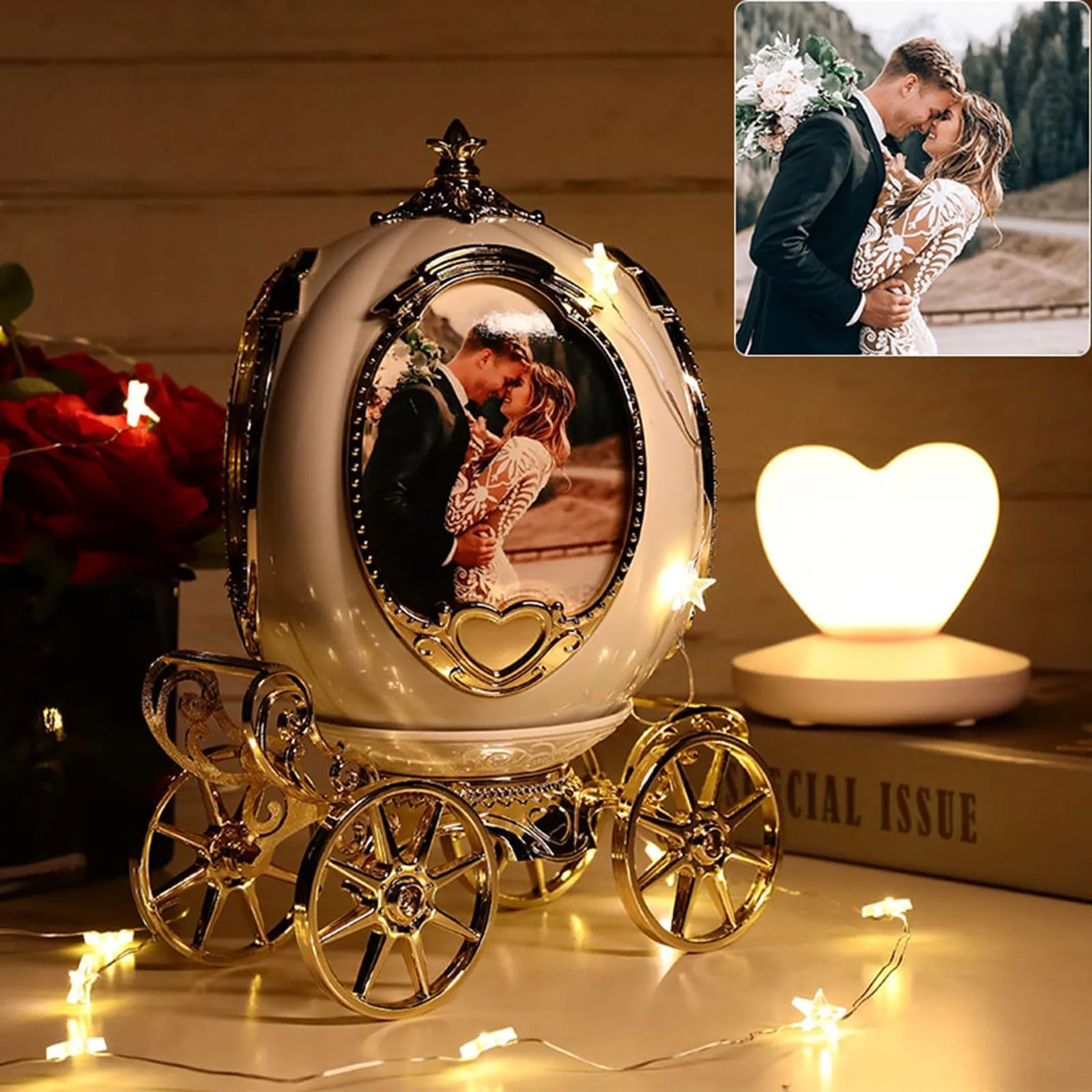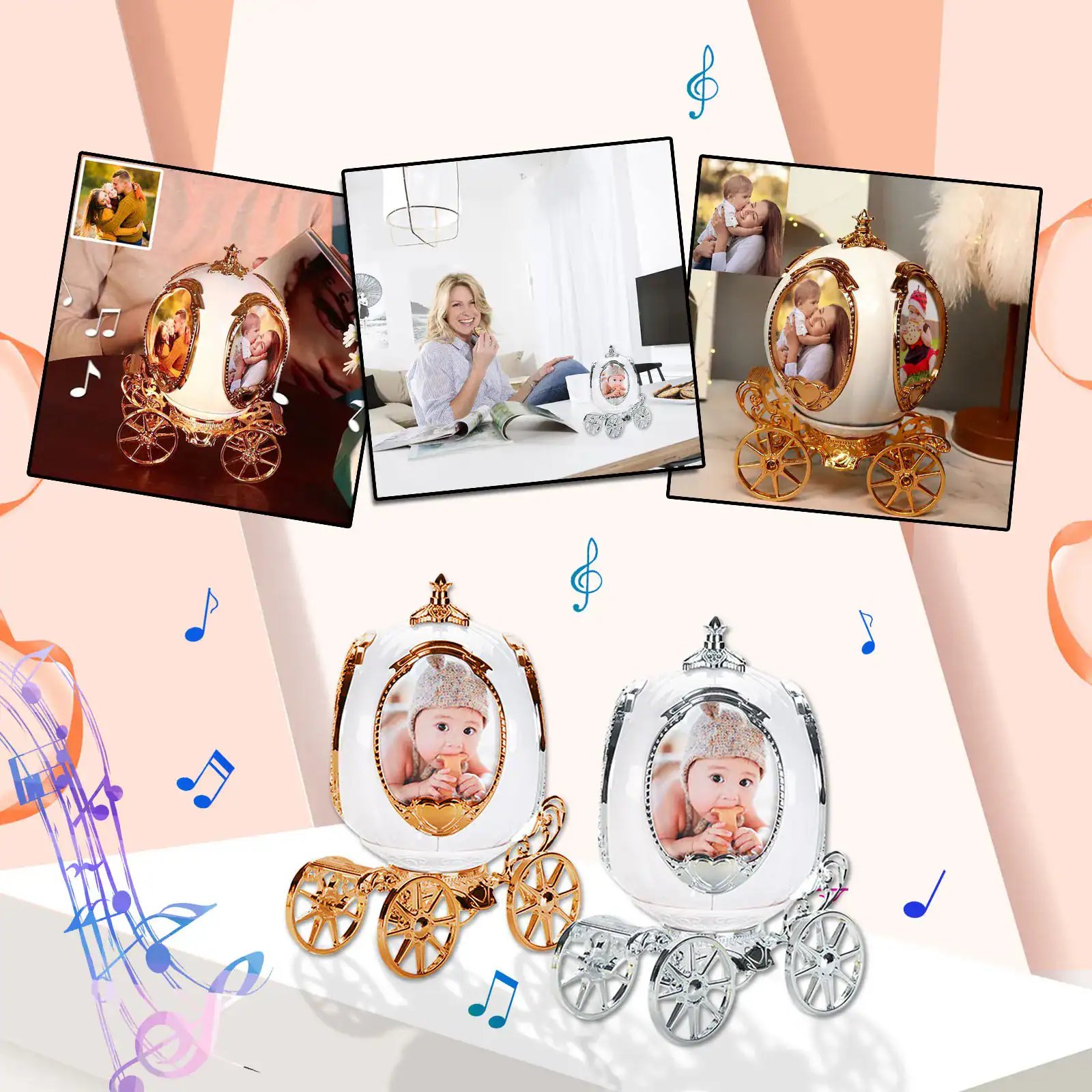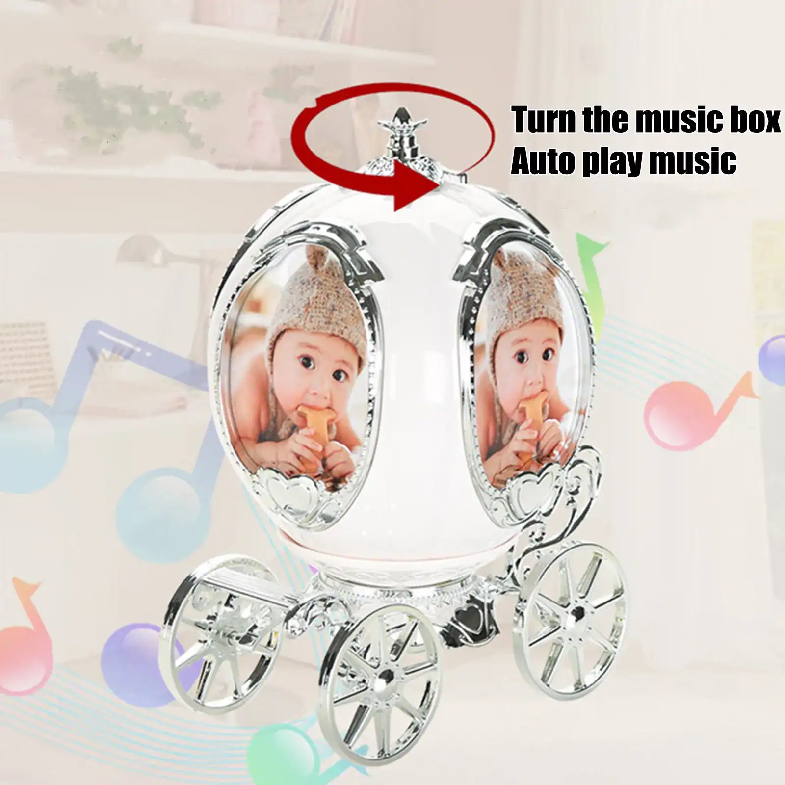 Are you looking for a special gift for your loved ones? Introducing to you our Personalized photo frame music box. This music box has the shape of a fairy-tale pumpkin car with the 4 sides of the pictures you have chosen. The ingenious design allows you to rotate among 4 photos. It’s the perfect way to switch up a room for the change of seasons without having to replace the photo frame. A crystal knob is a crowning glory on this photo cube. The revolving wood base ensures it won’t scratch your surfaces. This simple, but meaningful photo cube is unique and personalized, which makes it a perfect gift for your wife, husband, girlfriend, boyfriend, family, or best friends. Don’t skip it! Buy now!