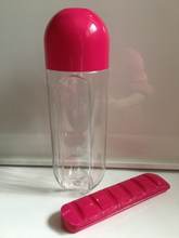 600ML Plastic Water Bottle With Daily Pill Box Organizer Drinking Bottles