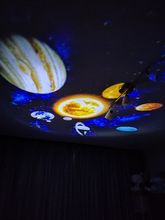 The projector was tested by a half-year-old child. I didn't. The pictures are clear, you can adjust the focus at different projection distances. Ball rotation is fixed. Made very high quality. The instruction is detailed. You can separately turn on a projector or side light with stars. But you can and to work at the same time. The upper half-sphere is easily removed and the stars are projected on the walls. If you put it back, then you get a night light. There is a timer to disable.