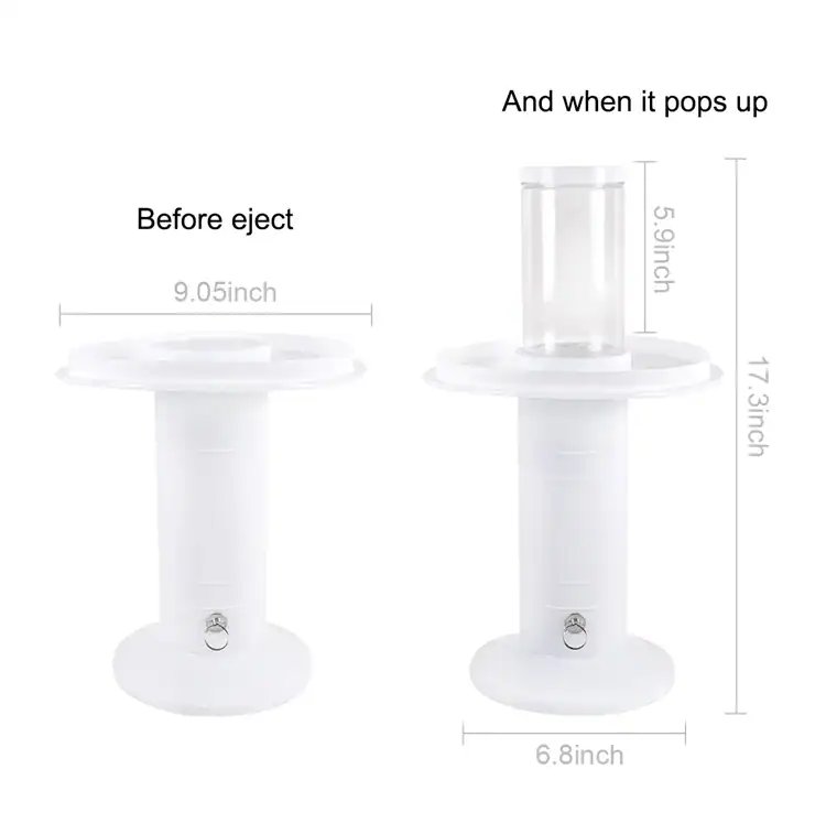 How it works is, before you put your pre-made cake onto the unique popping cake stand just place a gift, whether it’s cash, a new phone, candies, or other awesome stuff into the tube in the center of the cake stand. Then just press the tube down into the launching mechanism.