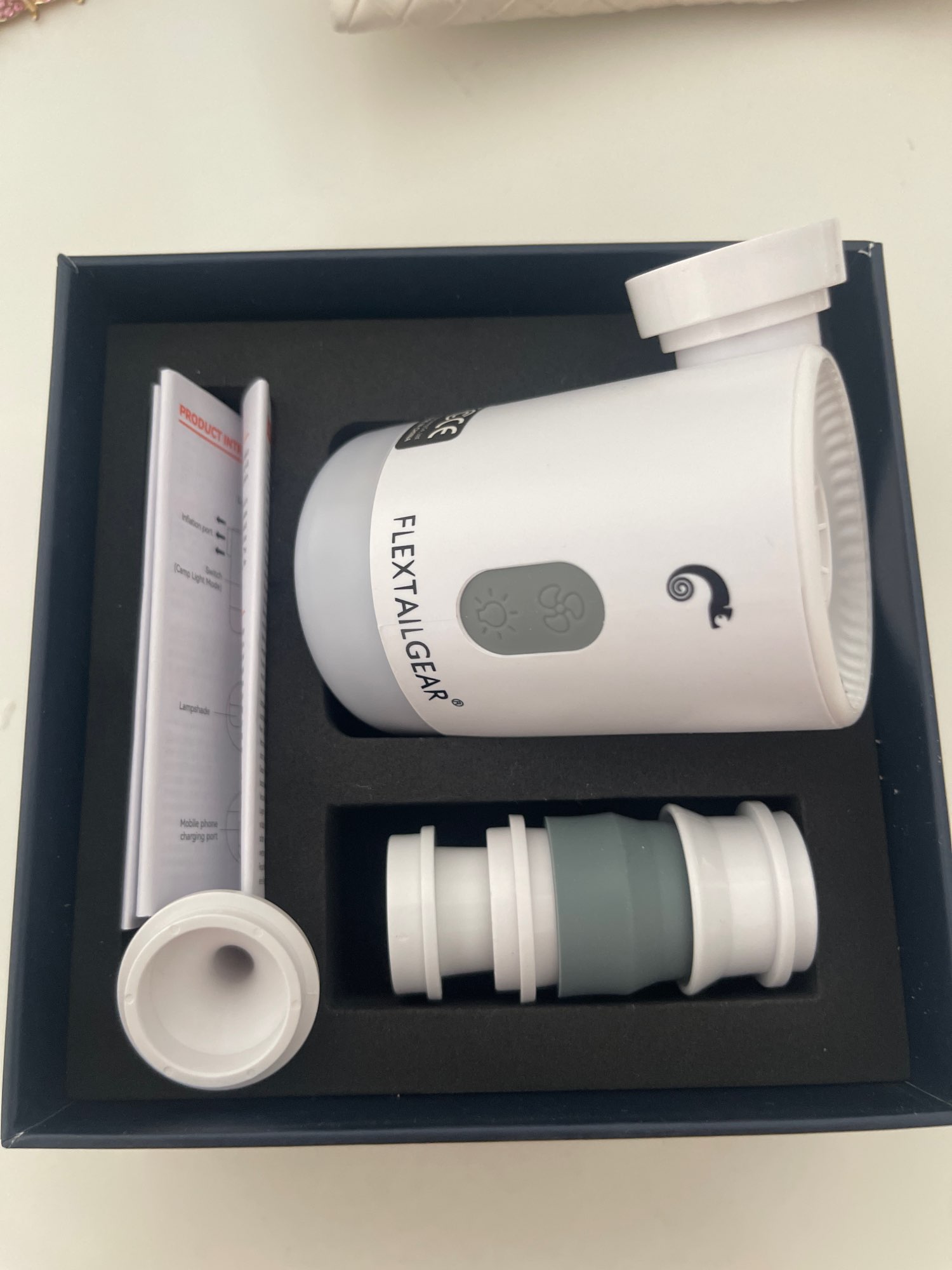 Small but very powerful pump with 2 modes of operation. Very nice box and complete with everything you need. Gorgeous powerful product complete and very comfortable. Very useful and very well made. I recommend buying this product.