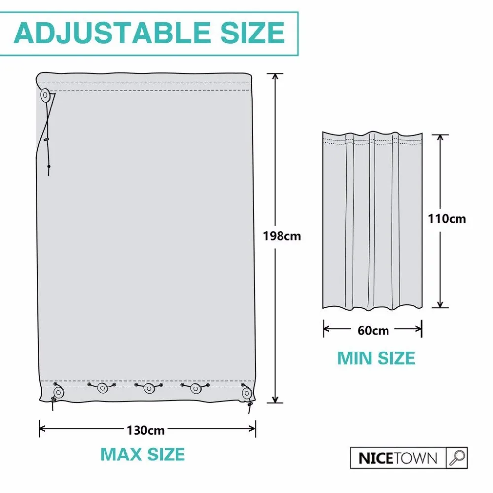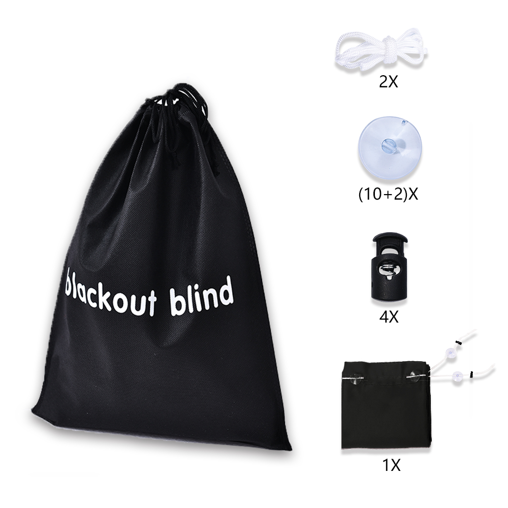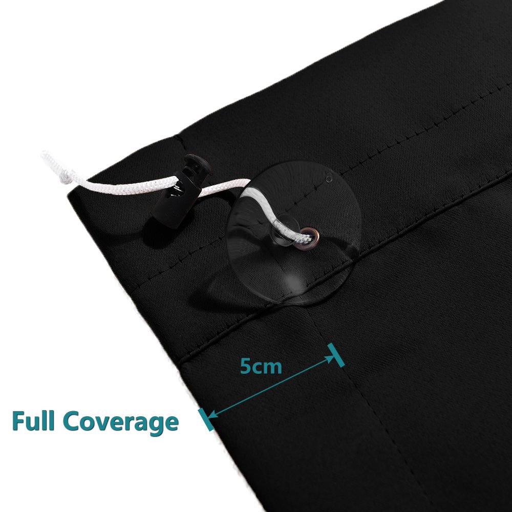 Ready-made: Package includes 1-panel BLACKOUT BLIND CURTAIN with 130cm wide x 198cm length, 12 suction cups, 2 drawstrings and 4 cord locks.