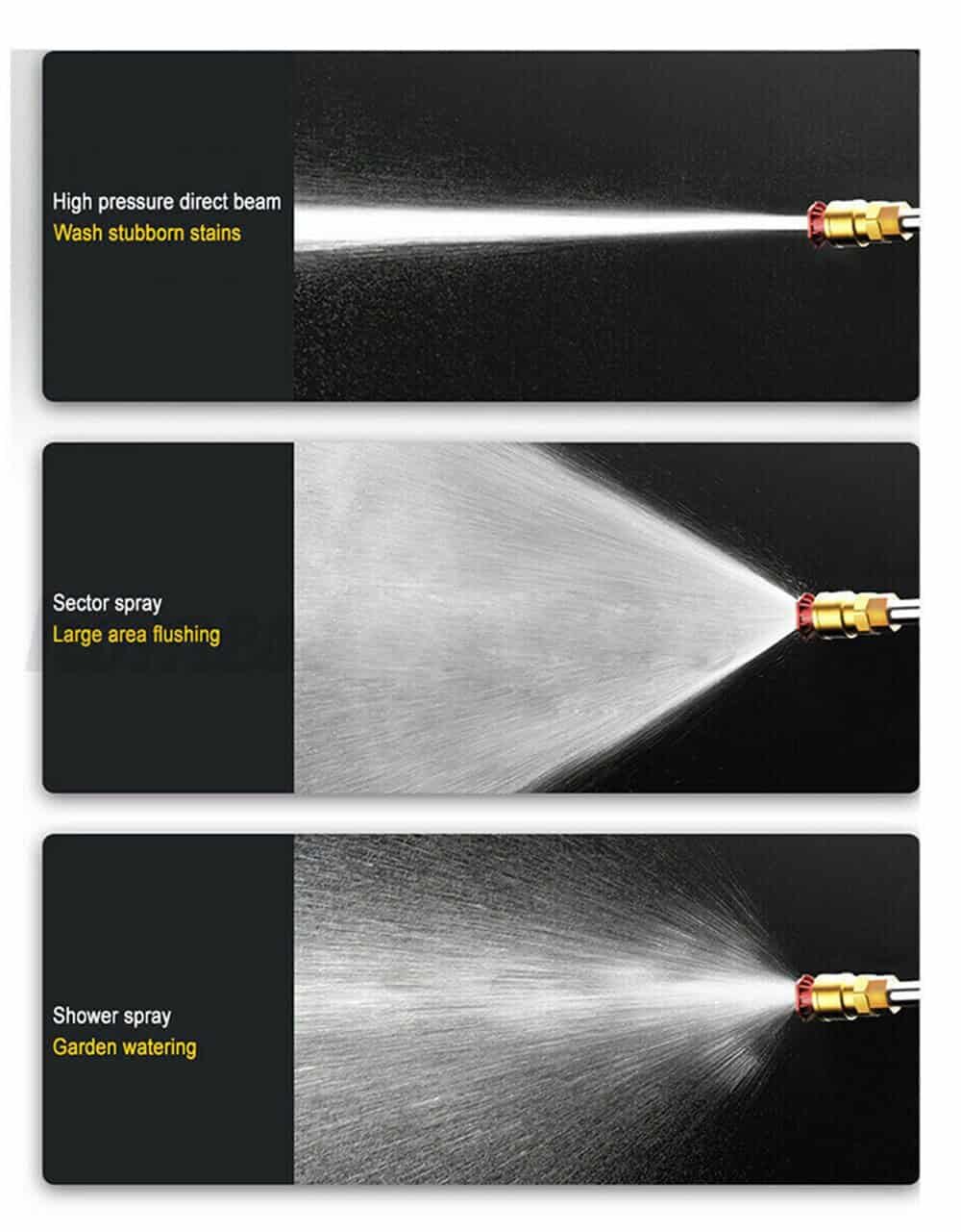 – Multi function water gun, freely switch water type: the water flow can be adjusted gradually from small to large by rotating the nozzle.Switch sectors at will, Direct water regulation.