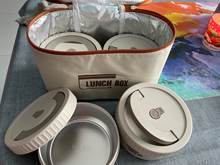 All OK. Very fast shipping. Lunchbox neatly made. THE protective cover is rear extra pocket cutlery. Bag is cooler.