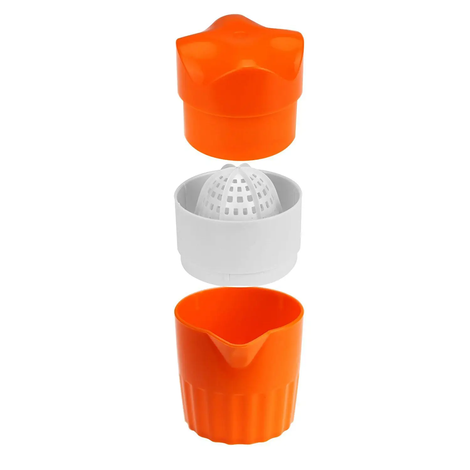 2. The white juicer and filter catch pips and pulp allowing the juice to pass through to the pouring cup.