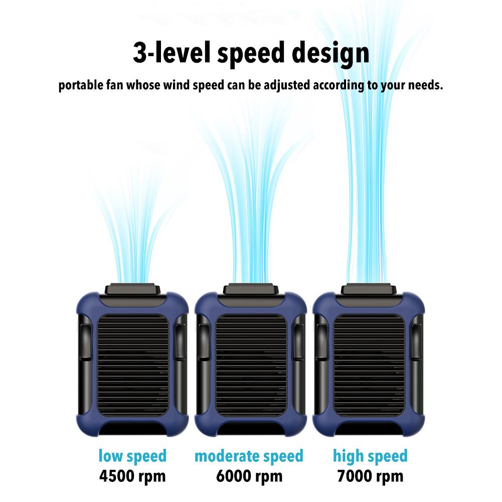 This summer, no more sweat. Stay cool anytime, anywhere with our portable mini waist fan! This fan built-in a powerful motor that can offer up to 7000RMP speed, which is stronger than other small personal fans. 3 Air volume levels are adjustable: high, medium, and low, you can choose different levels according to the surrounding temp. Moreover, compared with a fan with visible wind blades, its embedded turbo design, not only makes you cool but also protects you from any safety risks, such as the rotation of the blades or putting in fingers. Just clip this mini fan on your pants belt or hang it around the neck and enjoy the cool wind! Great for outdoor activities like fishing, hiking, climbing, cycling, and shopping, also ideal for people who have to work at high temperatures, such as construction sites, kitchens, farms, warehouses, etc. Order now!