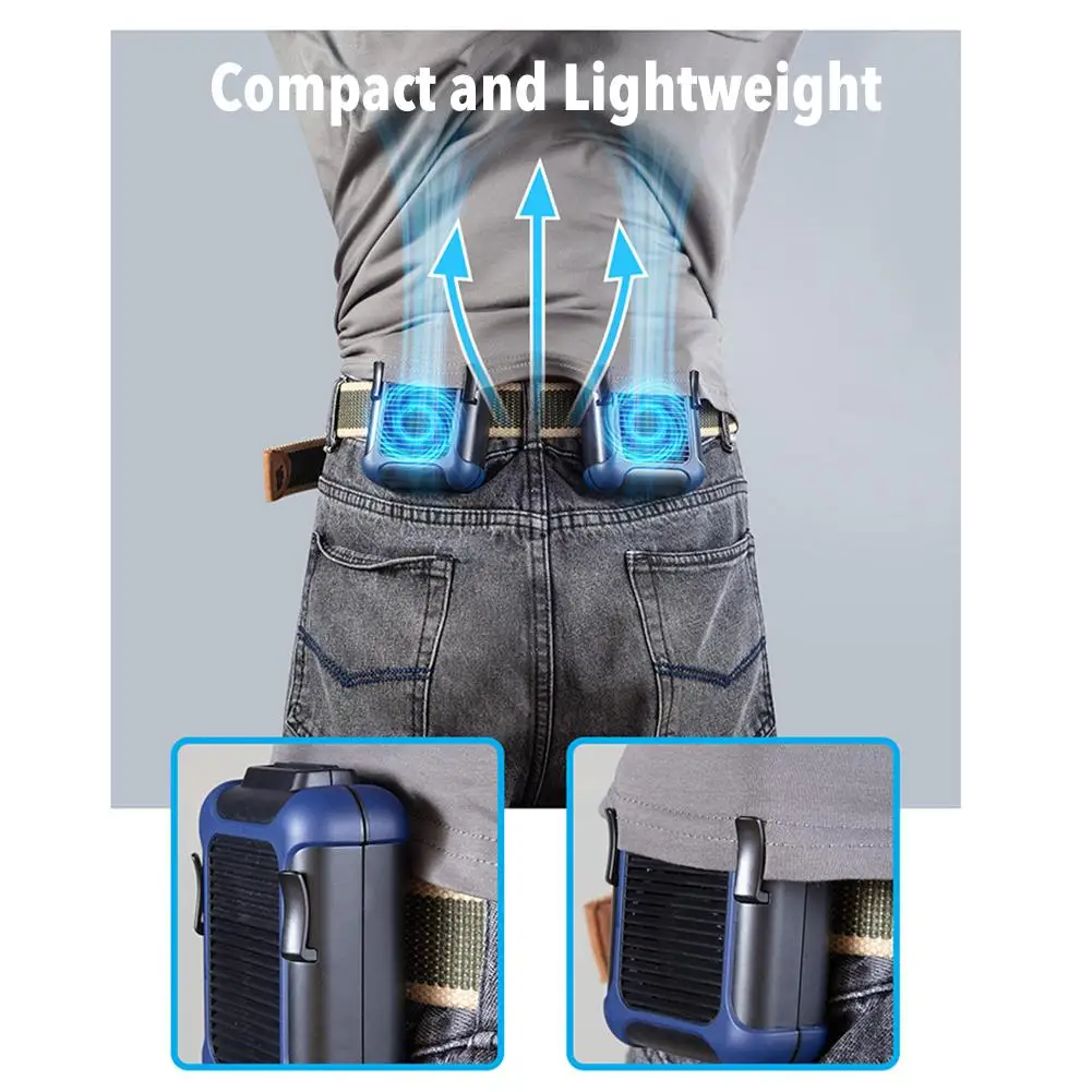 This summer, no more sweat. Stay cool anytime, anywhere with our portable mini waist fan! This fan built-in a powerful motor that can offer up to 7000RMP speed, which is stronger than other small personal fans. 3 Air volume levels are adjustable: high, medium, and low, you can choose different levels according to the surrounding temp. Moreover, compared with a fan with visible wind blades, its embedded turbo design, not only makes you cool but also protects you from any safety risks, such as the rotation of the blades or putting in fingers. Just clip this mini fan on your pants belt or hang it around the neck and enjoy the cool wind! Great for outdoor activities like fishing, hiking, climbing, cycling, and shopping, also ideal for people who have to work at high temperatures, such as construction sites, kitchens, farms, warehouses, etc. Order now!