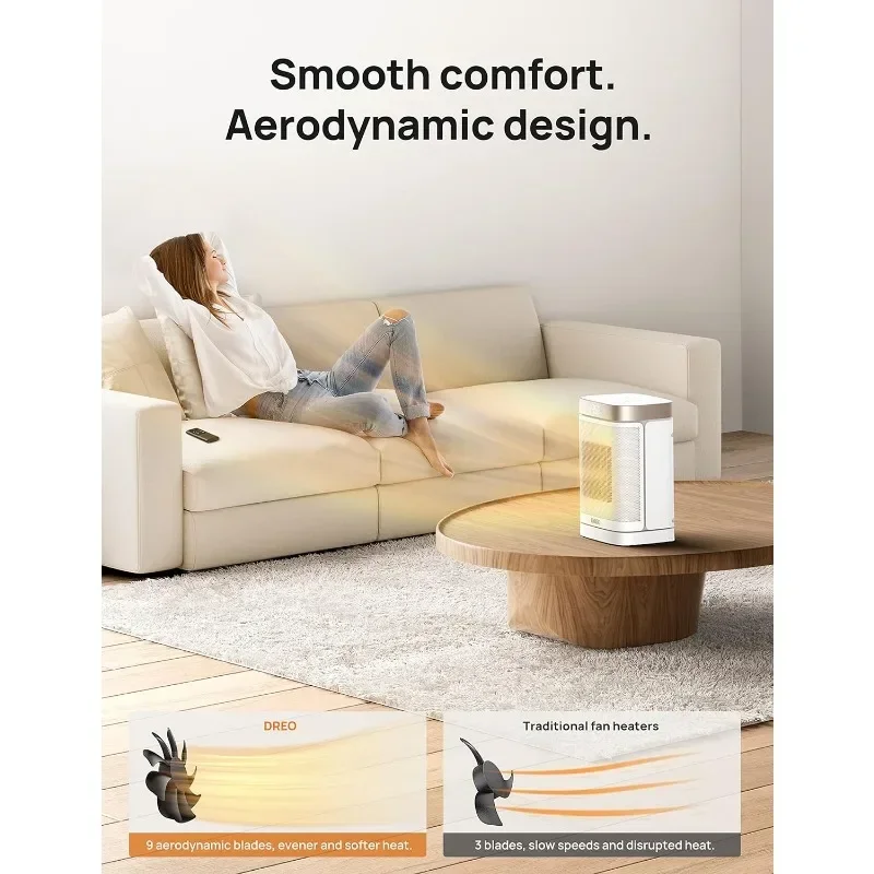 • Faster Heat Than Ever: Powered by Dreo PTC Ceramic, this 1500W electric portable space heater heats up more efficiently, reaching the desired temperature in a matter of a few seconds, letting you feel instant, balmy heat straight away