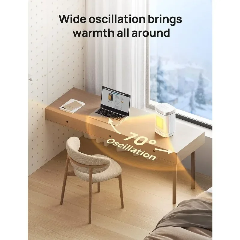 • Warm Any Angle: Experience the heat that envelopes you in the widest way possible. 70° wide-angle oscillation sweeps around to cover the whole area, providing wide-reaching heat for your bedroom, garage, basement, office, desktop, etc