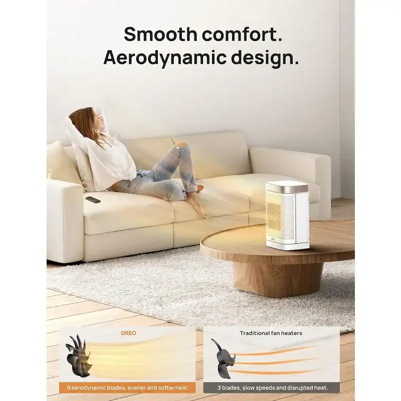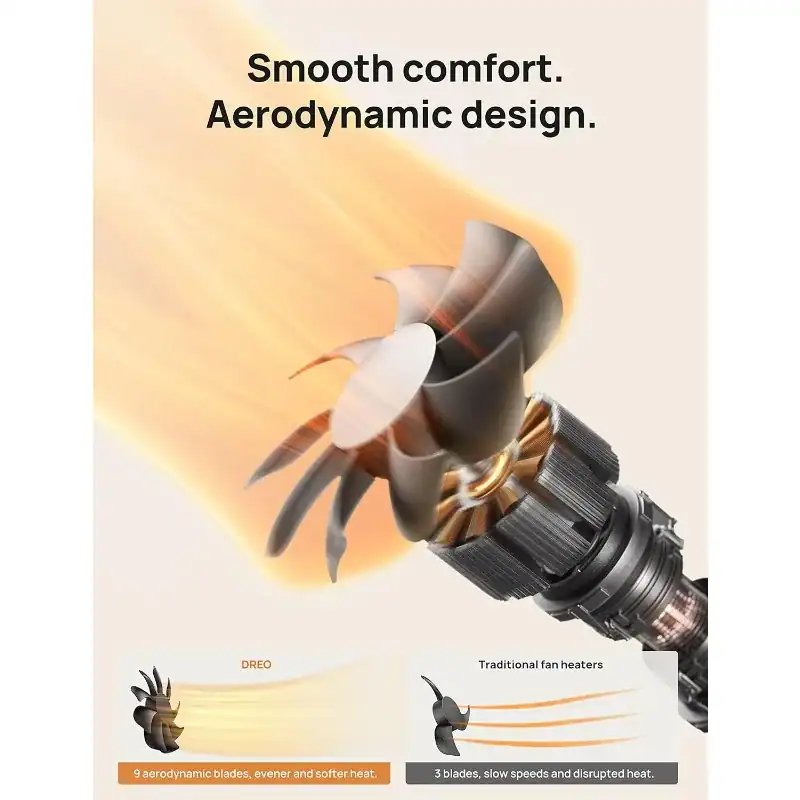 • Engineered to be Quieter: Brushless DC motor and 9 aerodynamic blades smooth out airflow and eliminate air turbulences, delivering soft, tranquil warmth. As quiet as 37.5 dB, you can sleep or work with peace of mind