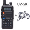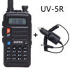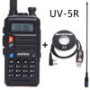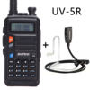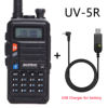 UV-5R is a powerful radio. with optional methods to charge the battery. But the standard does not include the USB cable and headset.