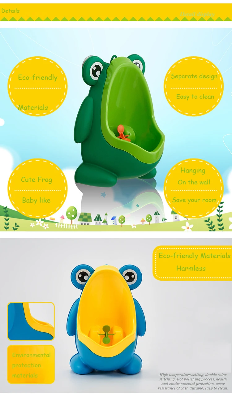 Frog potty is sooool cool! Nicely made, nice colours, size appropriate for a little boy. My son (2 years old) liked it from the moment I unpacked it and seemed to know straight away what it's for (thought hasn't actually peed in it yet). So far so good :) Super fast delivery!! Just under 2 weeks!! Well packed