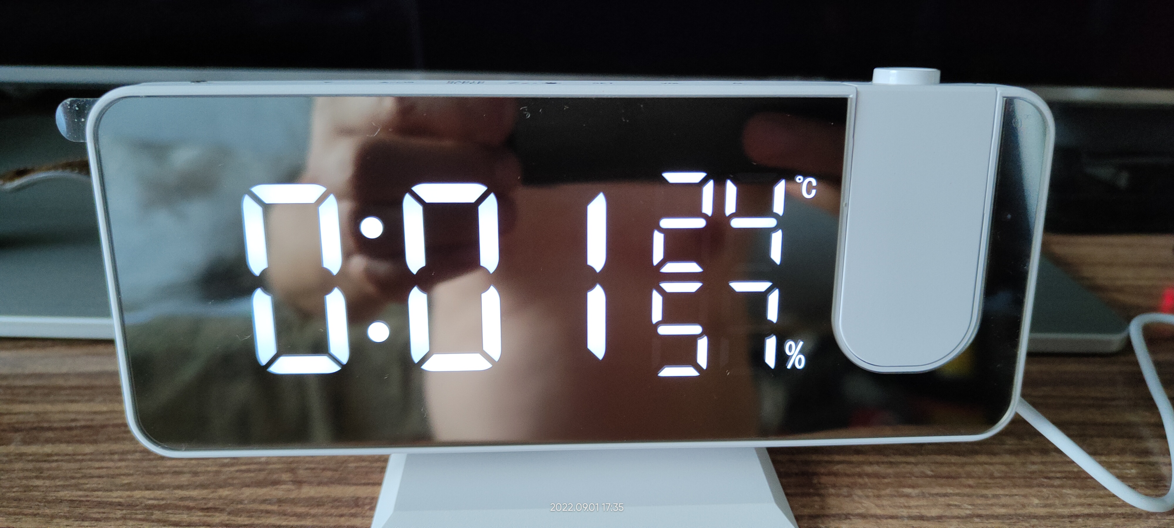 Projection function: project time, adjustable focus, 3-level projection brightness, can rotate the projection 180°.