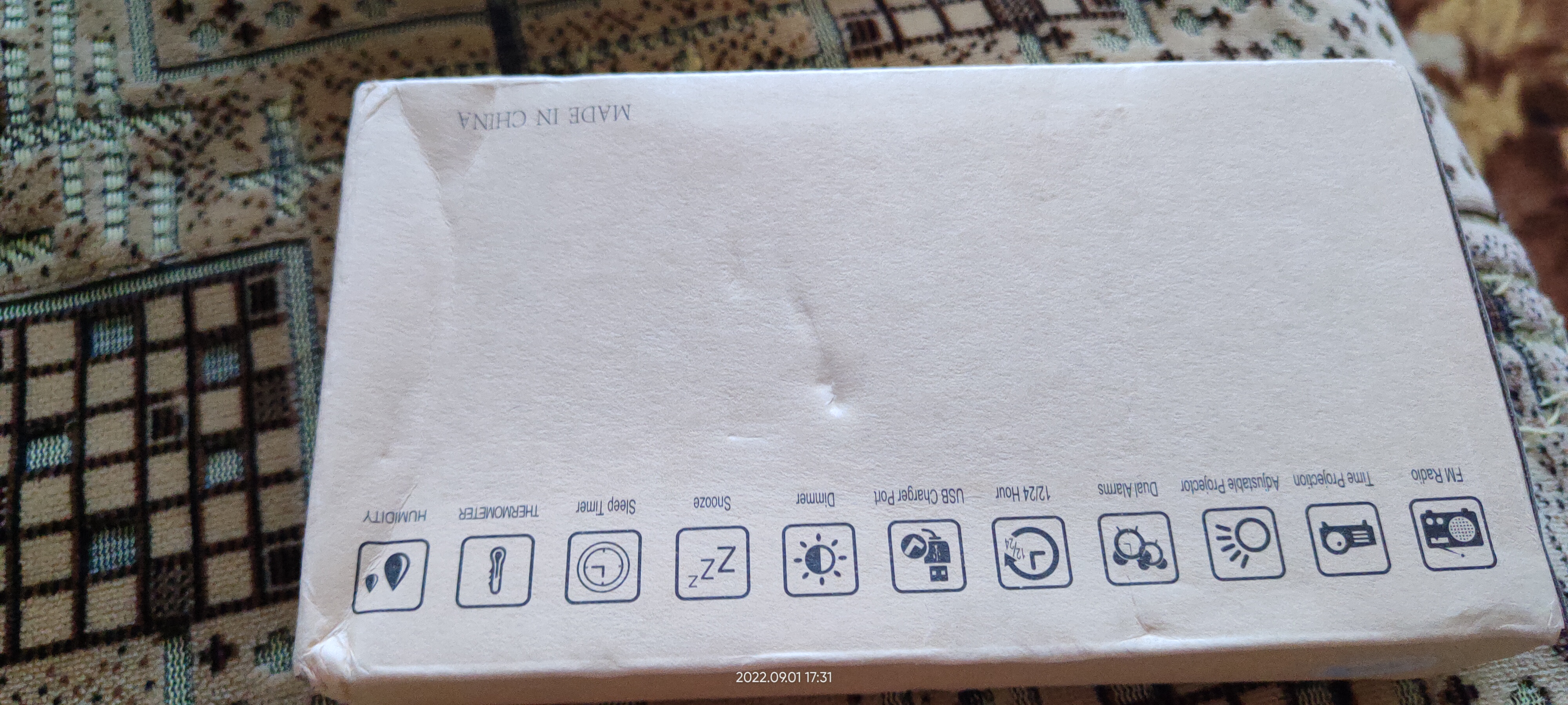 I'll start with a great watch. The goods sent relatively fast. The delivery time was delivered on September 5, but the parcel arrived several days earlier. Outer packing is not damaged. The box itself is slightly deformed, but the clock itself was not damaged inside. The power cable is included, so there were no problems with the connection. Instruction in English, but the basic knowledge of the language is enough to understand. The numbers are large, they are visible perfectly. The radio is catching. Very convenient piece-projector. At night, just an indispensable thing. He pointed at the ceiling, opened one eye-ope-clock on the ceiling. Super. There is a dimming mode from external lighting. It is not necessary to worry that the night of the scoreboard shines too much, and in the afternoon nothing is visible. I recommend to buy.
