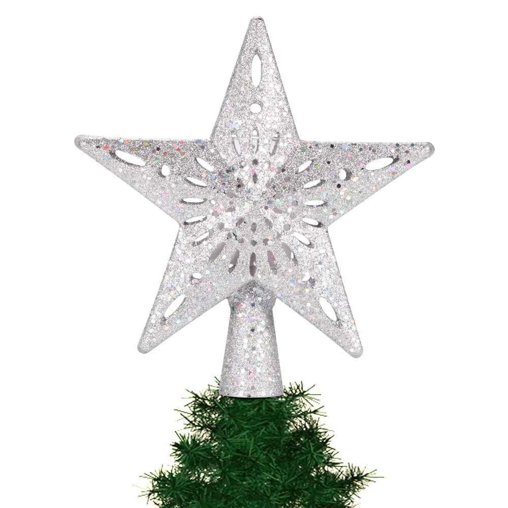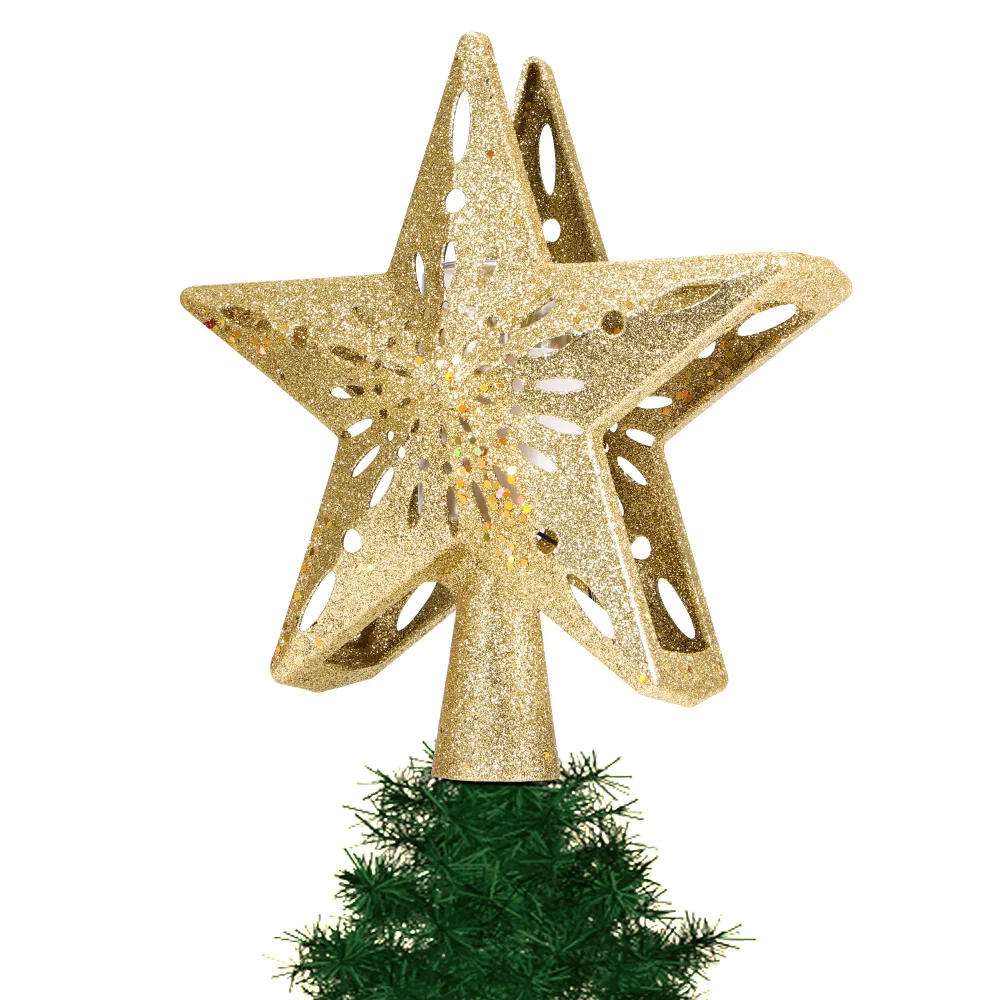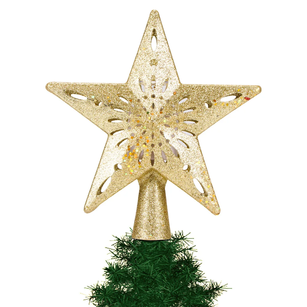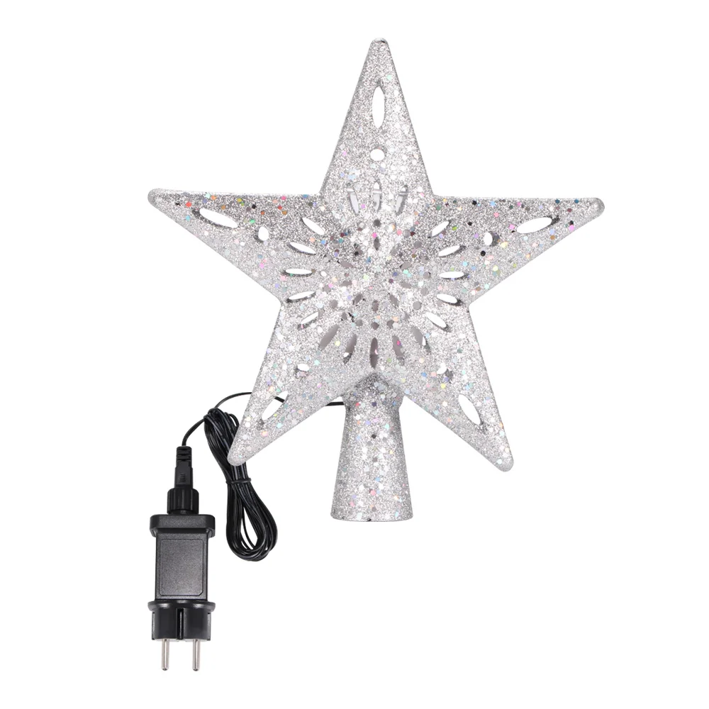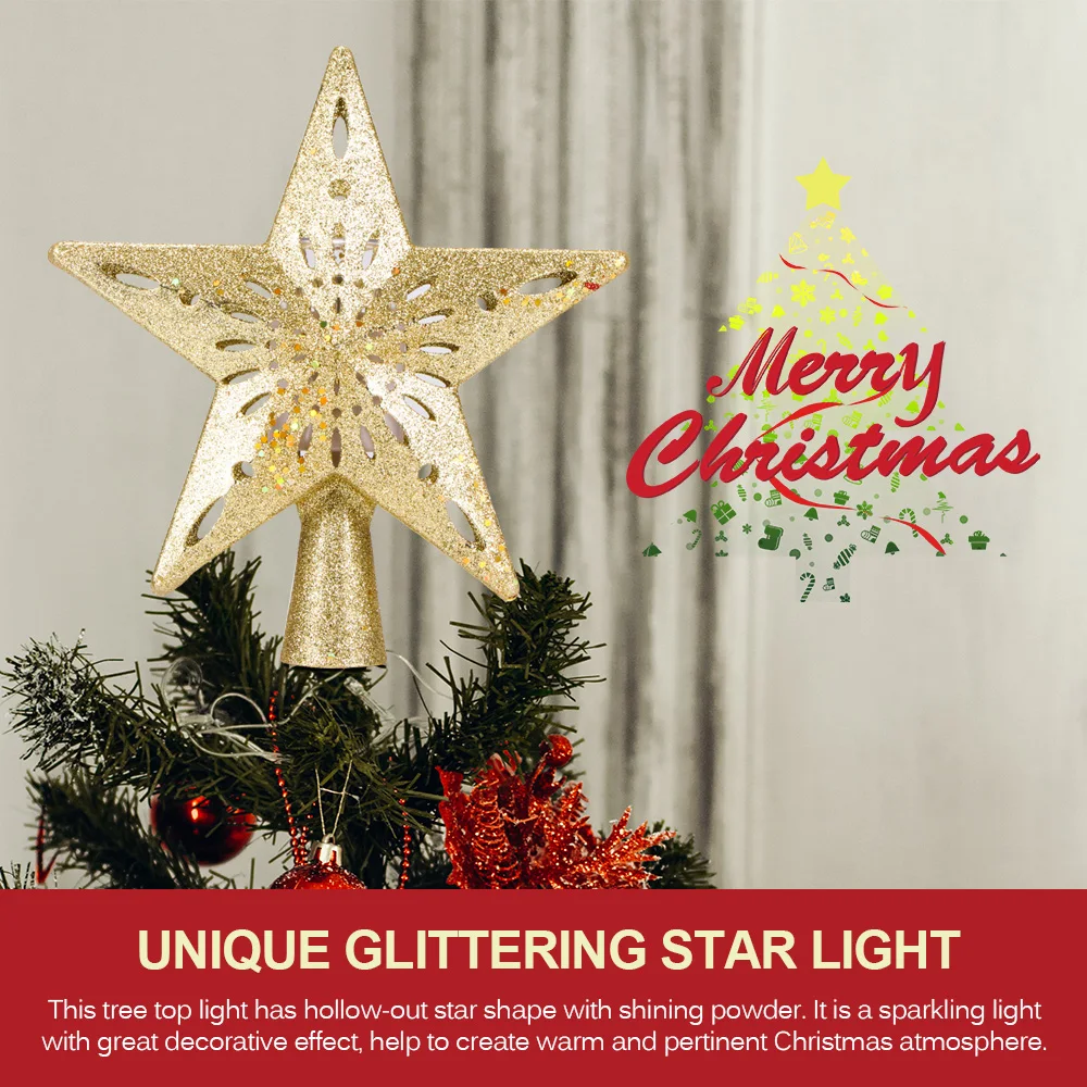 This treetop light has hollow-out star shape with shining powder. It is a sparkling light with great decorative effect, help to create a warm and pertinent Christmas atmosphere.