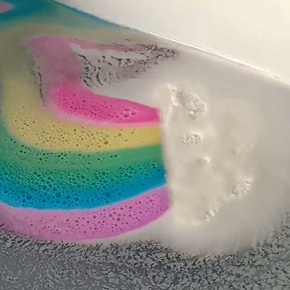 It will fizz for up to 5 minutes while creating a lovely rainbow like a stream of colour on top of your bath water! Take a bath and watch as it releases a vivid rainbow & amazing scents. A beautiful and fun bath bomb for all ages. You’ll be clean & smell amazing!