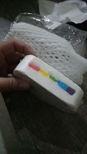 Product looks as picture. Nicely packed and arrived whole. Smells nicely, a bit like coconut. Can't wait to test it out in the tub!