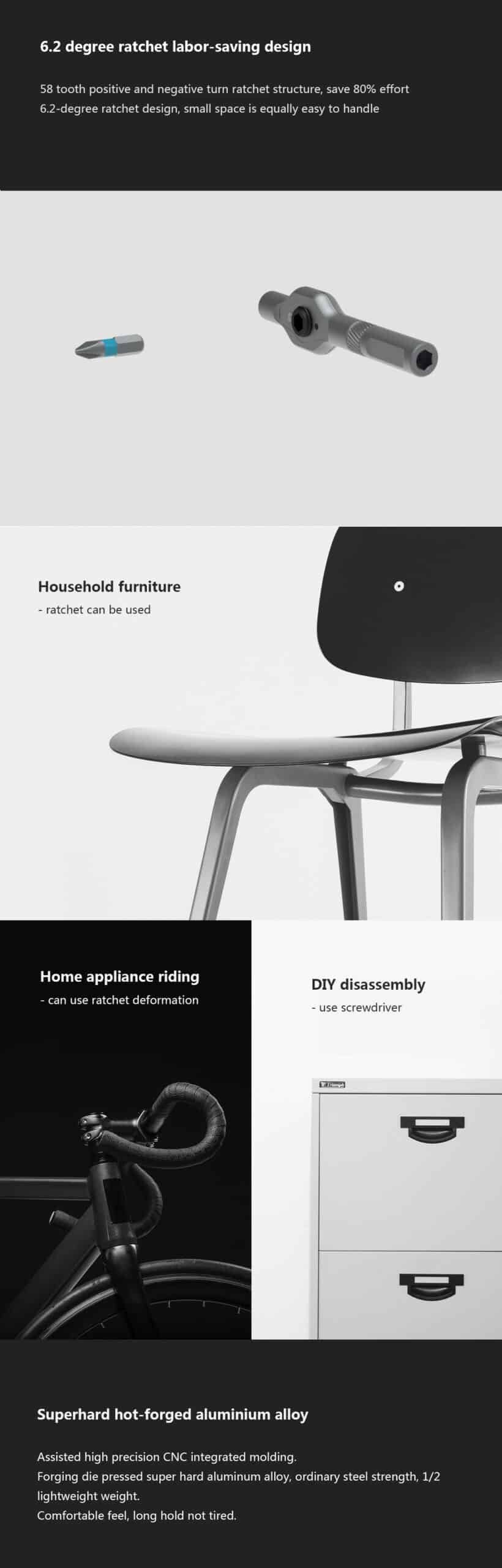3.【High-Quality Materials】:This durable wrench ratchet screwdriver set are made of high-strength S2 Chrome Moly steel bits, 6063 Alloy steel handle and 5053 Alloy steel ratchet gear. Super-hard hot-forged aluminum alloy, assisted with high-precision CNC-body forming, forged and molded super-hard aluminum alloy, normal steel strength, 1/2 light weight, comfortable hand feeling, long-lasting not tired.
