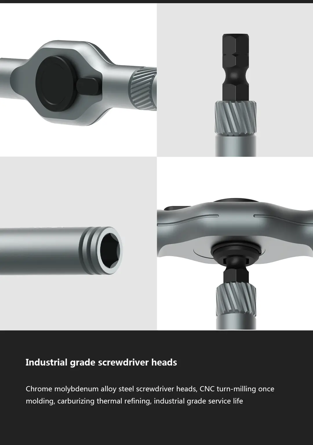 4.【Magic Variable Multi-Function Handle】: Fast magnetic adsorption ,switch multi-function ratchet wrench and screwdriver as you like in various occasions, and adapt to more occasions. The cramped space, deep cavity structure, all handy.