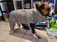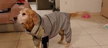 Beagle XXL came up just right. The dog is smeared less during the walk, it is easier to wash, since only the paws have to be washed and that's it. See that the raincoat does not cling to the claw of the fifth finger of the front paws, the dog will immediately let you know by biting this place, it is enough to raise the windbreaker sleeve above. In general, the purchase is dawlen.