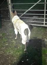 Thick, good quality jumpsuit. Brightly reflected in the dark. Ordered size 4XL for Labrador. Sat down well. A little big in the length of the paws, you can sow. It was 1,5 months. With a costume are Velcro inscriptions. Came the ones I chose.