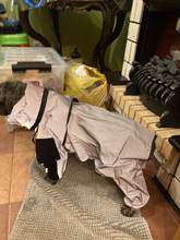 Chic jumpsuit. The fabric is durable, waterproof. On our beagle 16 kg perfectly sat size XXL. The bag is very satisfied.