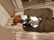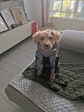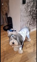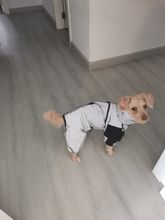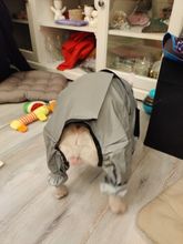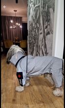 Recommend, cute ubranko. The only disadvantage is a zipper on the back when the dog has long hair is hard fasten. For my dog about weight 22kg wzięłam size XXXL.