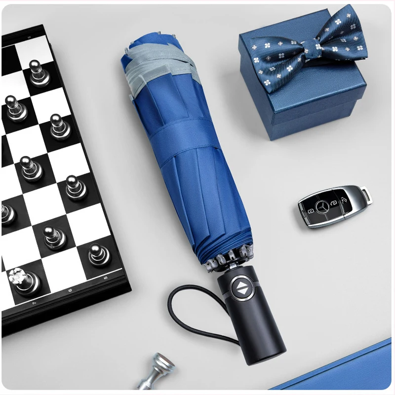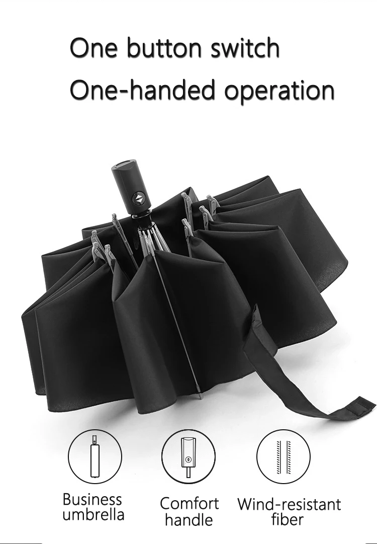 AUTO OPEN AND CLOSE: This portable travel umbrella has a fully automated system, perfect for one-hand operation. Simply open or close the umbrella with a press of a button to give you quick rain and sun protection. No more worry when the other hand is full!