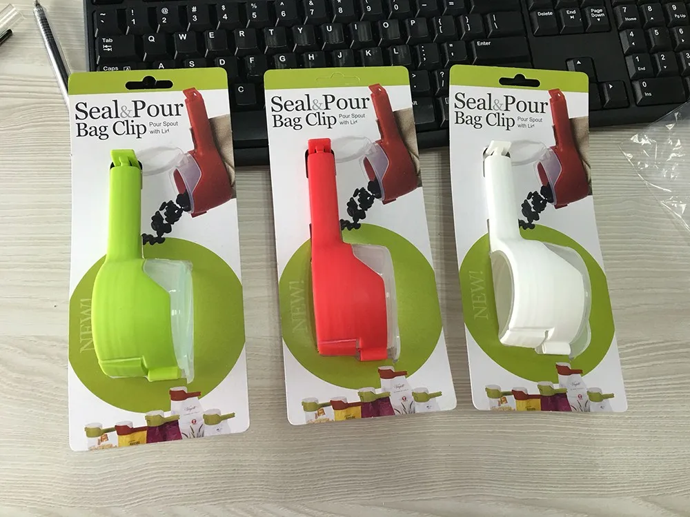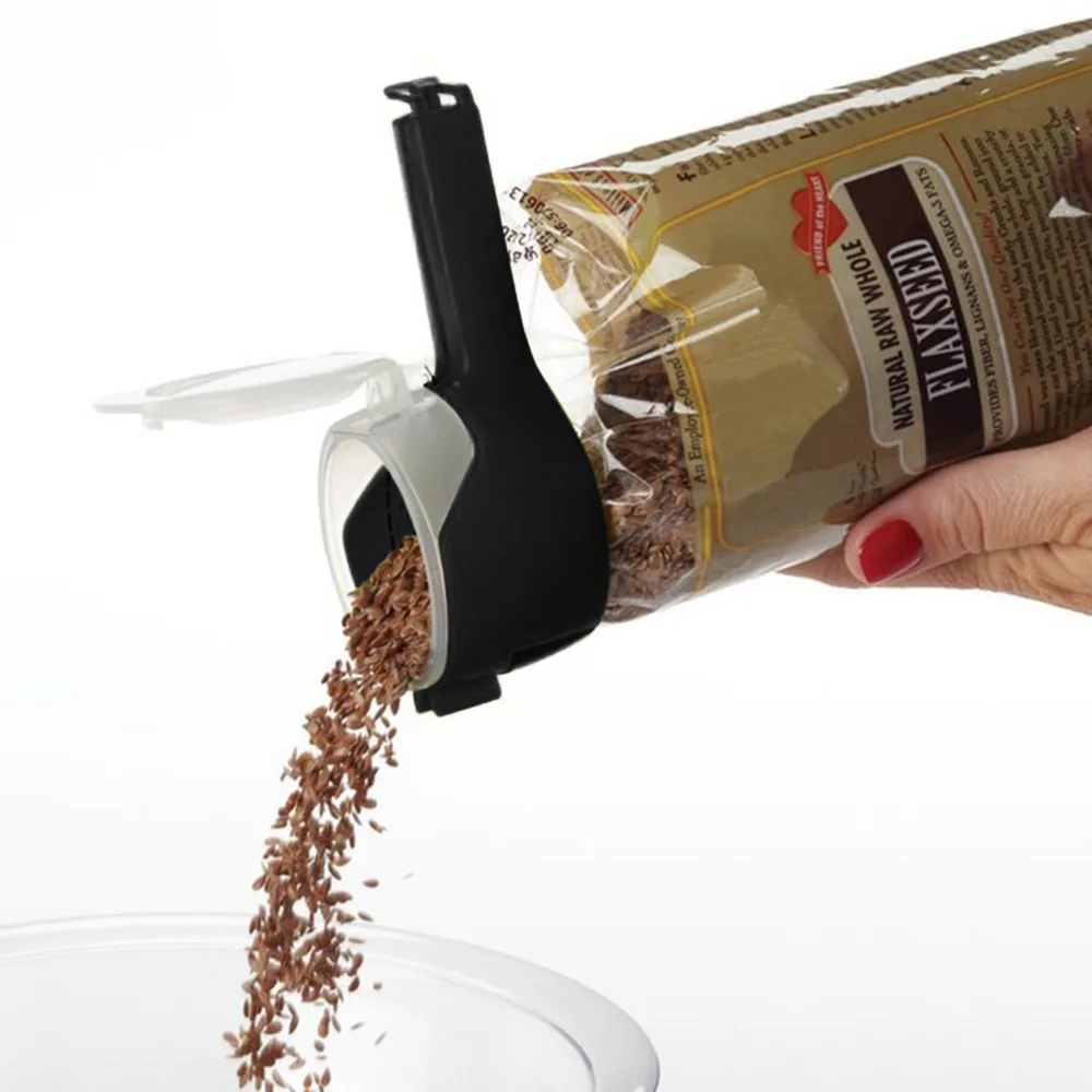 Keep your food fresh longer with our Seal And Pour Clip. The clip easily attaches to bags with an air-tight grip to keep food fresh while the easy-pour cap makes it quick and simple to pour the perfect amount of food out of the bag each time. It’s perfect for storing cereal, pasta, chips, snacks, and candy.