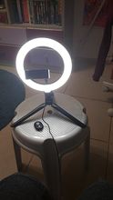 2. 2-in-1 design combines the phone holder and selfie ring light together, it is a professional tool for creating live videos/recording with smartphone or computer. Perfect extra light for make-up, live streaming, lay flat, selfie photos, filming, video recording, online teaching, dark scenery vlogging etc.
