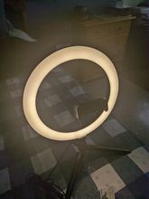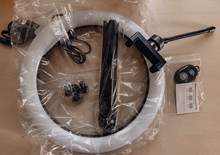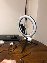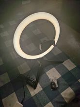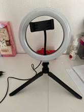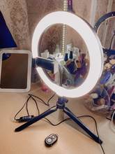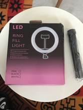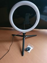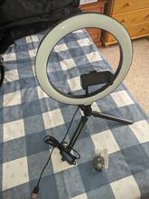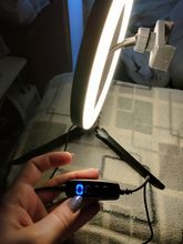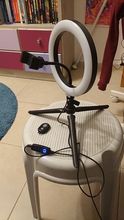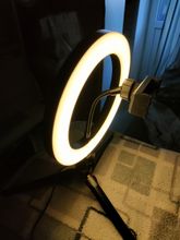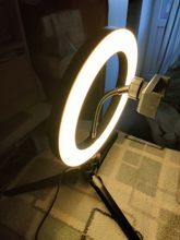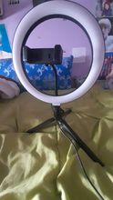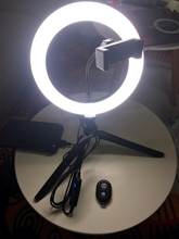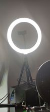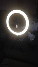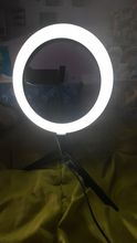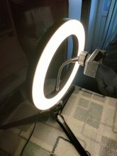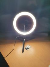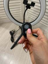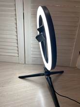 The LED desk lamp was packed with a lamp in a pu bag and a branded box, a tripod separately into a package and a box. During transportation, nothing was damaged and not scratched! Now about the self-contained lamp with a tripod. Tripod long 16 cm. Ring lamp: 26 cm. Everything is going easily and quickly. Power: 10 W. In the kit of the ideöt remote with the battery, which easily contacts with any smartphone via Bluetooth. Light Transmission: white lamp, warm lamp, soft lamp Material: aluminum, Polycarbonate. (so the tripod is very left-handed and if desired, it is fashionable to take with soboi) Dimming range: 1%-100% Color temperature: 3200K-5600K Usage: photography lamp, makeup lamp, streaming video, just for all that sharing shower, such as take video. You can adjust the light, make it brighter or vice versa. The lamp and tripod are very high quality. Madly happy with the purchase! Such in our city are much more expensive! Несомнdenn