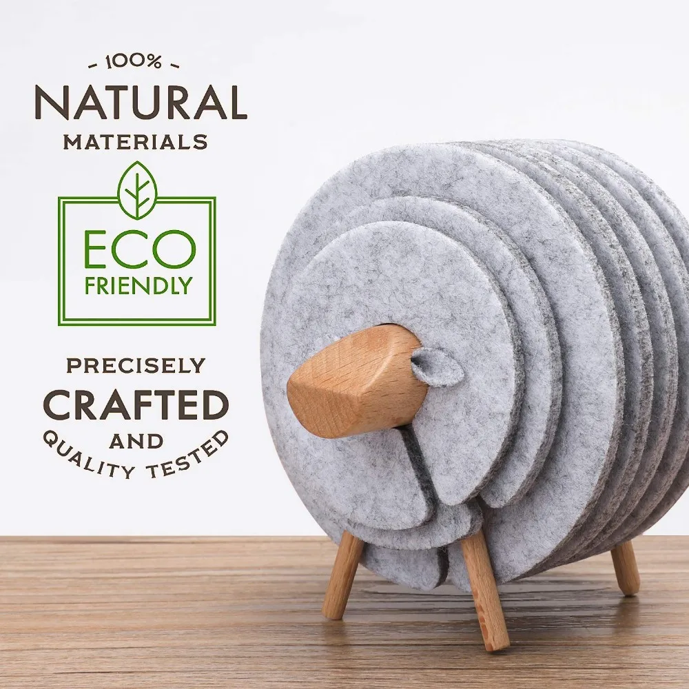 5. BEAUTIFUL DECORATION AND GIFTS – This hot pad and sheep coaster set are unique, innovative, eco-friendly. Novelty home decorative, perfect housewarming gifts, and a good choice to sent friends, family as presents.