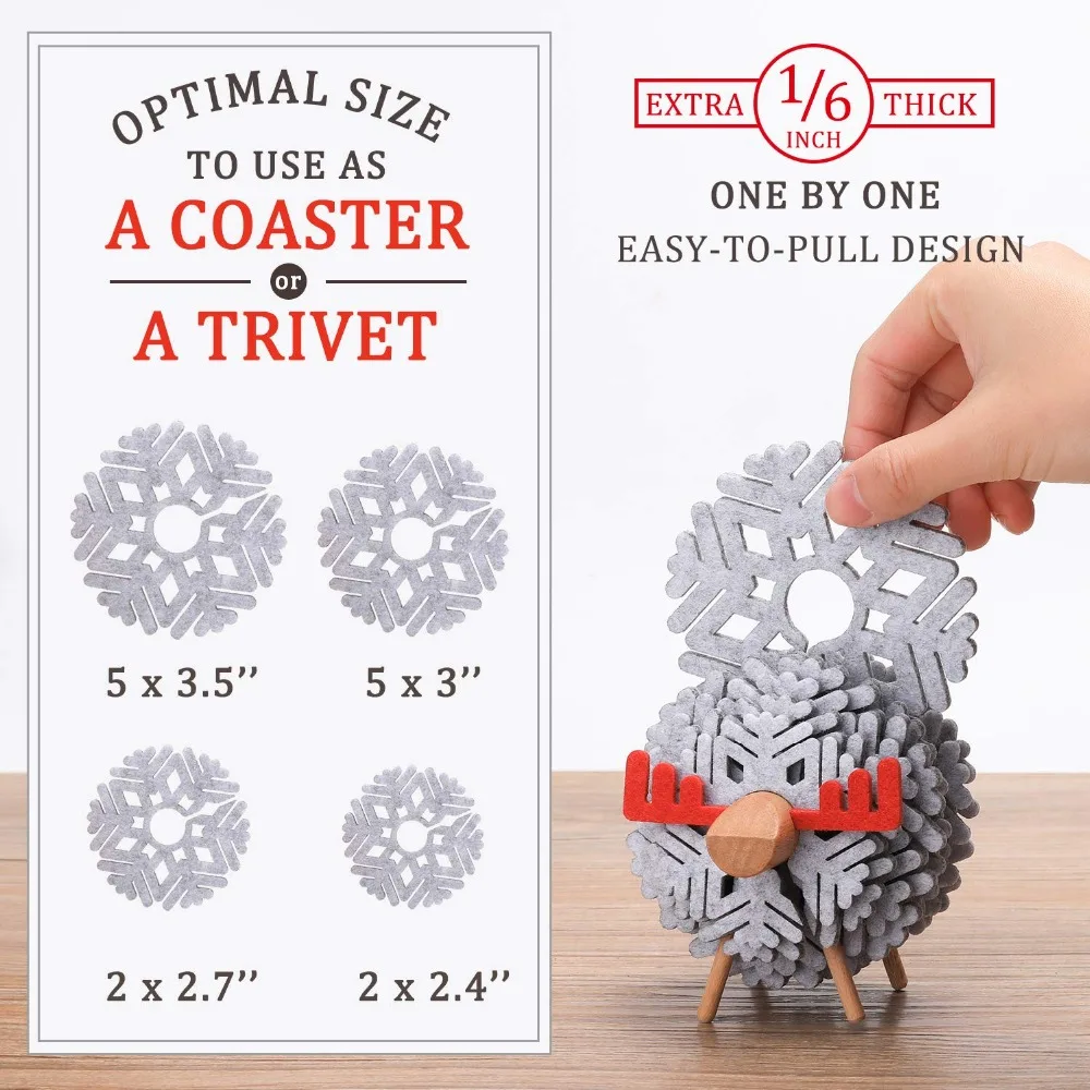 1. UNIQUE & STYLISH, ART & LIFE COASTERS – A variety kinds of 4 sizes grey coasters pieces create a 3-dimensional snowflake DEER body holder. Not only use for cup mat but also tabletop decoration for home, coffee shop, dining bar, living room, restaurant, office and so on. Funny, novelty. Display it as a rustic tabletop ornament for all to see and admire! Life and art are integrated to enhance your life quality