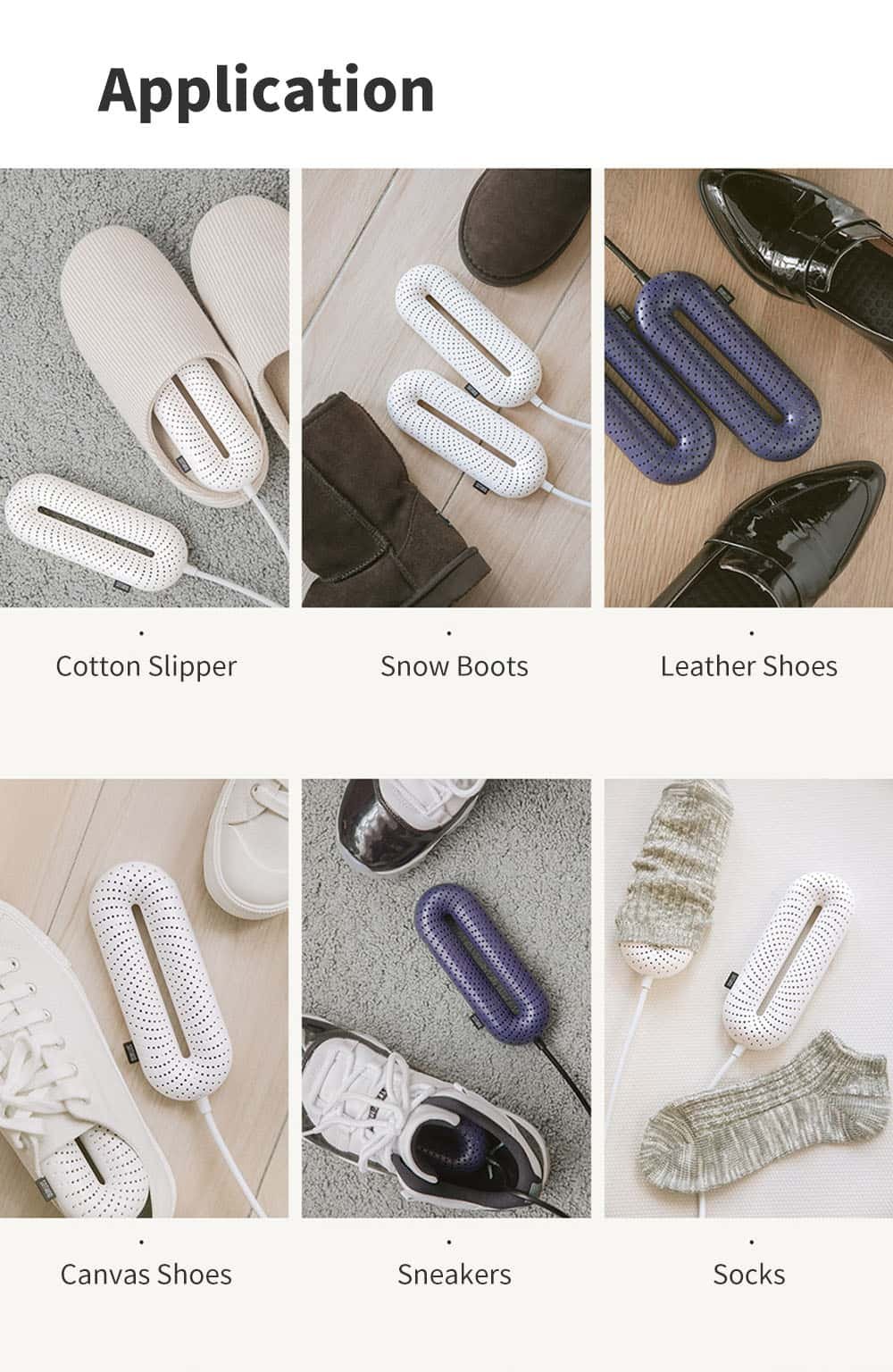 The Zero Odor Shoes Deodorizer is a unique portable household electric disinfection shoe dryer. This new slick design utilizes UV Constant Temperature PTC heating to dry and deodorize its immediate area. It comes in two colors, purple and white. Our premium version contains a LED self-timer.