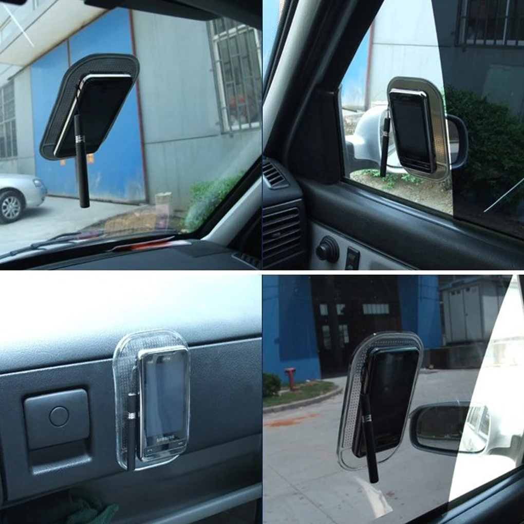 This non-slip Silicone Gel Pad will allow you to easily and quickly stick your phone to almost anything. The pad is made of non-toxic silicone, and uses a spider sticky technology to cling to almost any surface without glue or adhesive. The pad can also hold other objects like your GPS, coins, sunglasses and so on. Going hands-free has never been so easy!