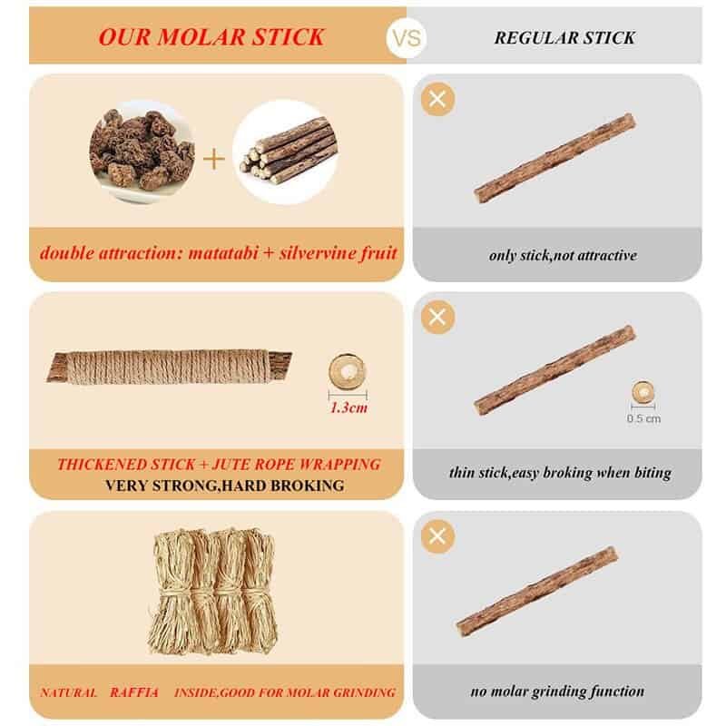 Natural Silvervine Stick contains dietary fiber which help cats eliminate hairballs, improve digestion and dental health, by chewing the silvervine, your fur babies dental plaque and tartar, fetid breath can effectively be eliminated and oral health can be improved.