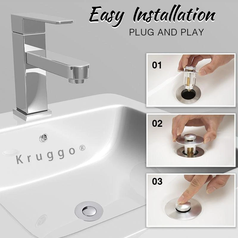 Pop-up design overturns the traditional, inconvenient drain (e.g. basic plug with chain)! Just press the top cap down gently to switch 2 modes –stopper (to keep the water) and strainer (to drain off the water).