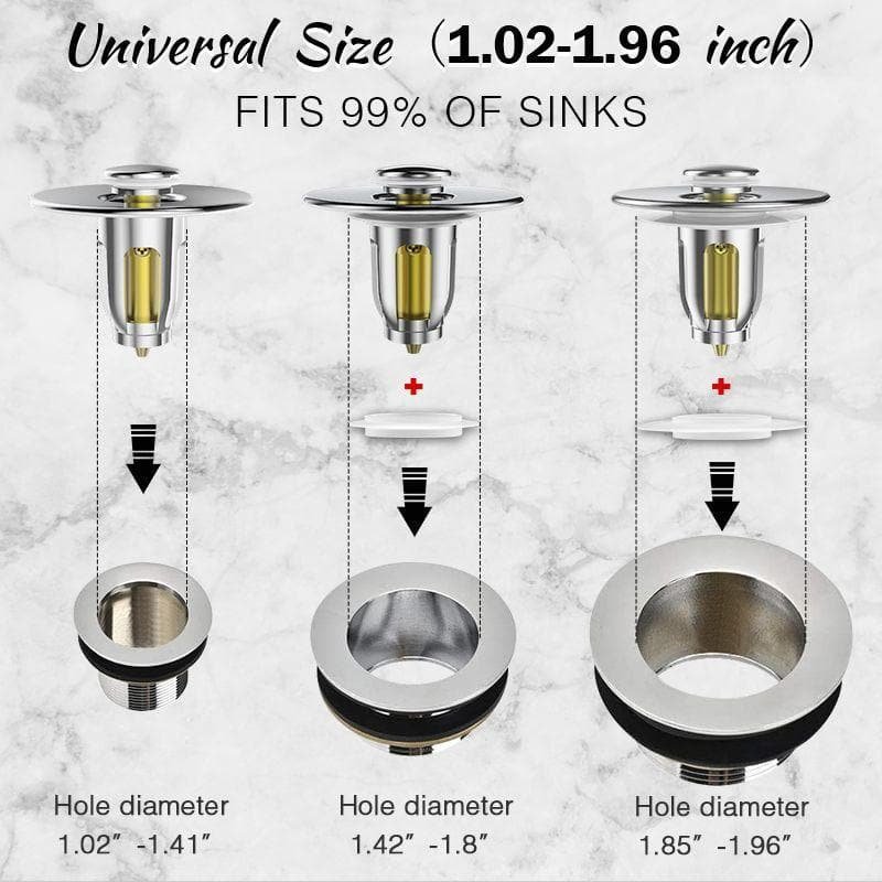 Sink Drain Stopper fits 99% of the bathroom sink with drain holes of 1.02-1.96 inches.No matter what kind of basin, bathroom sink drains or shower bathtub drains, it can work with all.