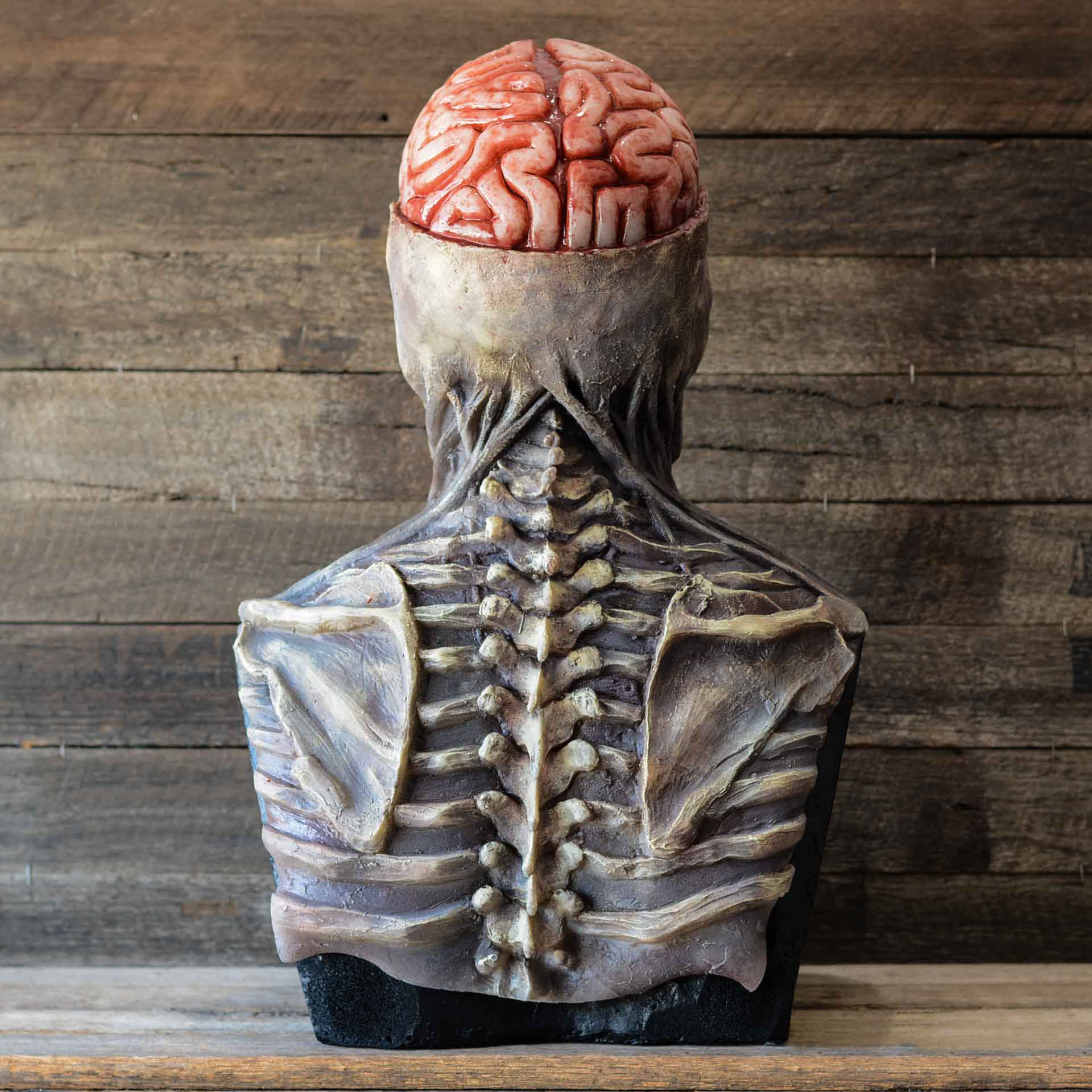 What do you think about being a horror gentleman on Halloween night? Let people be amazed by our Bare brain skull latex mask. The skull cosplay helmet is made from soft and elastic latex material, skin-friendly, with a lifelike soft touch. And also, it is non-toxic, comfortable, breathable, and can be worn repeatedly. This mask has a dark complexion, huge eyes, a huge mouth, and an exposed brain. It will make the neighbors and family members scream for you. It is different from other ordinary skull masks. You can wear it without a trace. When you put on the suit and hat in the picture, you are the scariest one at the Halloween party. Suitable for masquerade parties, Halloween, cosplay, carnival, Christmas, steampunk party, and other special occasions. You will receive lots of compliments on this trendy vivid costume mask. Buy it now!
