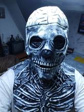 What do you think about being a horror gentleman on Halloween night? Let people be amazed by our Bare brain skull latex mask. The skull cosplay helmet is made from soft and elastic latex material, skin-friendly, with a lifelike soft touch. And also, it is non-toxic, comfortable, breathable, and can be worn repeatedly. This mask has a dark complexion, huge eyes, a huge mouth, and an exposed brain. It will make the neighbors and family members scream for you. It is different from other ordinary skull masks. You can wear it without a trace. When you put on the suit and hat in the picture, you are the scariest one at the Halloween party. Suitable for masquerade parties, Halloween, cosplay, carnival, Christmas, steampunk party, and other special occasions. You will receive lots of compliments on this trendy vivid costume mask. Buy it now!