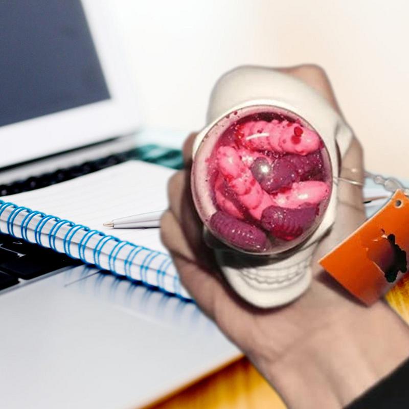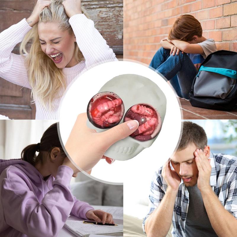 - THE MOST FUNNY HALLOWEEN STRESS BALLS: When you squeeze the skulls, their eyeballs swell and become oddly shaped spheres filled with crawling, bloody little reptiles.