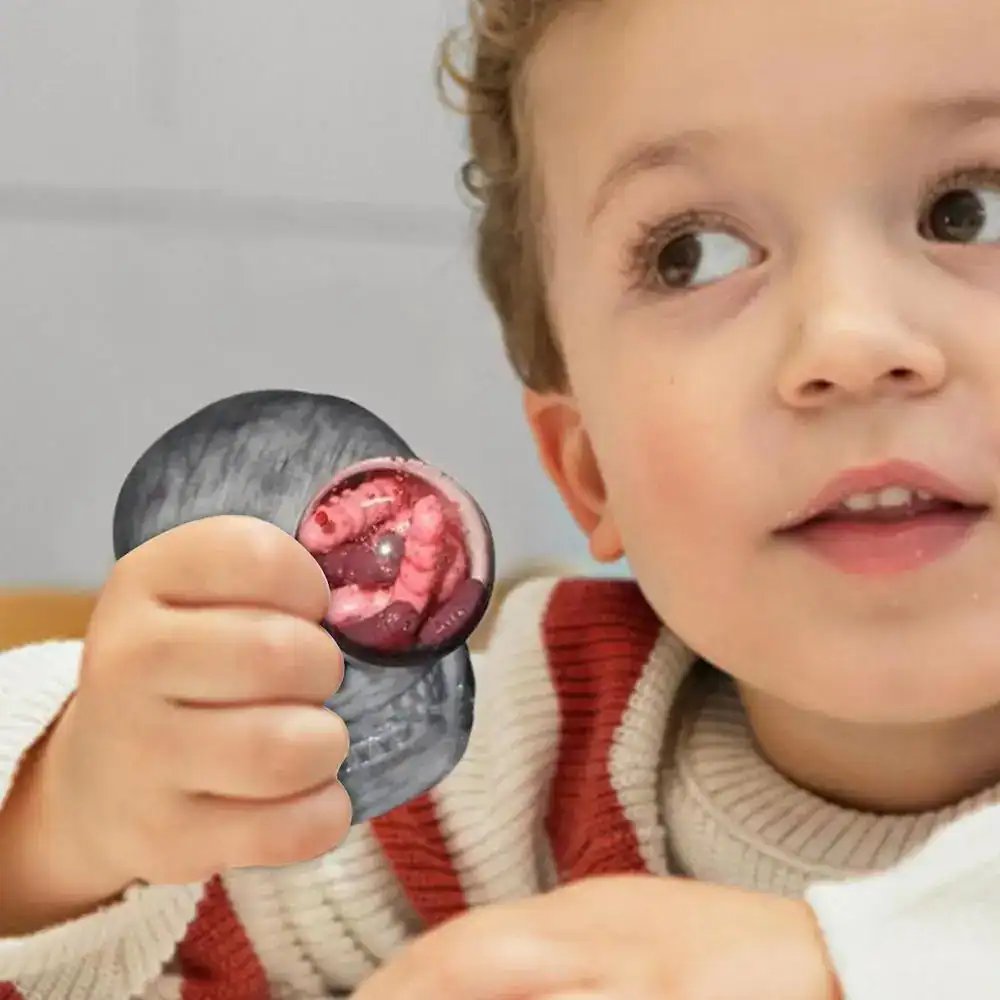 - THE MOST FUNNY HALLOWEEN STRESS BALLS: When you squeeze the skulls, their eyeballs swell and become oddly shaped spheres filled with crawling, bloody little reptiles.