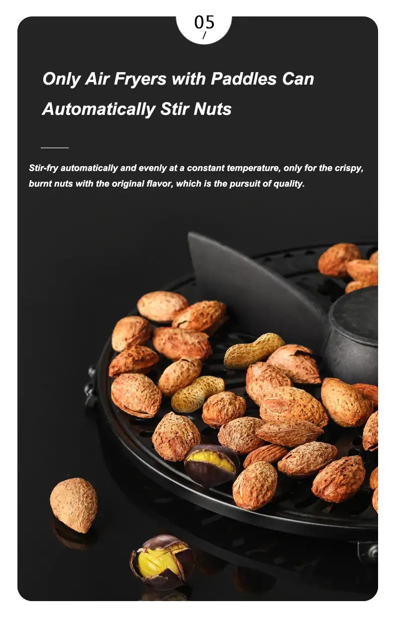 Multifunctional Air Fryer: With a 8L capacity and 2200W power, this air fryer equipped with a high-definition touch screen, built-in cooking light, and double-wall insulated viewing windows are designed to be the perfect assistant for your cooking and decoration of your kitchen counter. It can replace a variety of kitchen appliances such as a toaster, rotisserie, fruit dryer, oven, etc., perfect for families who pursue a healthy diet.